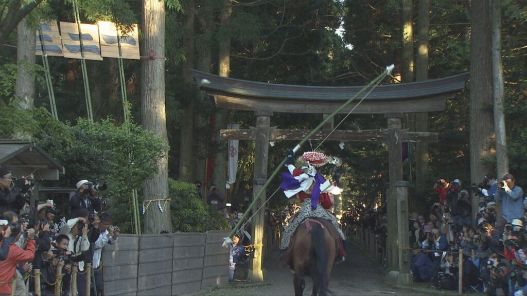 新着情報 ホーム > 新着情報 > コミチャン > 【091ch生中継】下村・加茂神社やんさんま祭り(5/4) 【091ch生中継】下村・加茂神社やんさんま祭り(5/4) 2026年4月6日 16:11 下村・加茂神社の加茂祭(富山県指定無形民俗文化財)は「やんさんま祭り」として親しまれています。全国的にも珍しい神事が多く、中でも参道を疾走する馬上から的をめがけて矢を放つ「流鏑馬(やぶさめ)式」は大勢の観衆を魅了します。 下村・加茂神社より生中継します。(雨天決行) 制作/射水ケーブルネットワーク 【放送チャンネル】091ch 【放送日時】5月4日(月・祝)15:00~18:30
