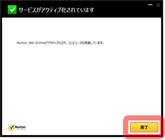 6)サービスのアクティブ化アクティブ化が開始され、「サービスがアクティブ化されています」と表示されます。「完了」をクリックしてウインドウを閉じてください。 |